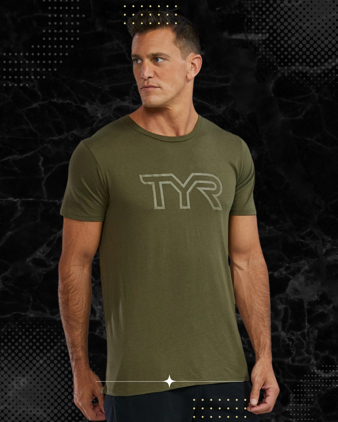 TYR Unisex Ultrasoft Lightweight Tri Blend Tech Tee - Big Logo Olive Night (932)